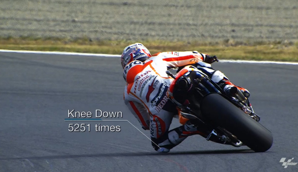 究竟Motogp車手在一季共18場比賽中行走多少公里?25台戰車共有多少馬力?每位車手停留在超過300km/h時間?總煞車公里?轉檔次數?磨包次數?......最近大會製作了一段影像,詳列有關數據,而這些數字當然是所有車手的平均數,但沒有計算練習及排位時間,只計算18場比賽時間,每場約40分鐘。