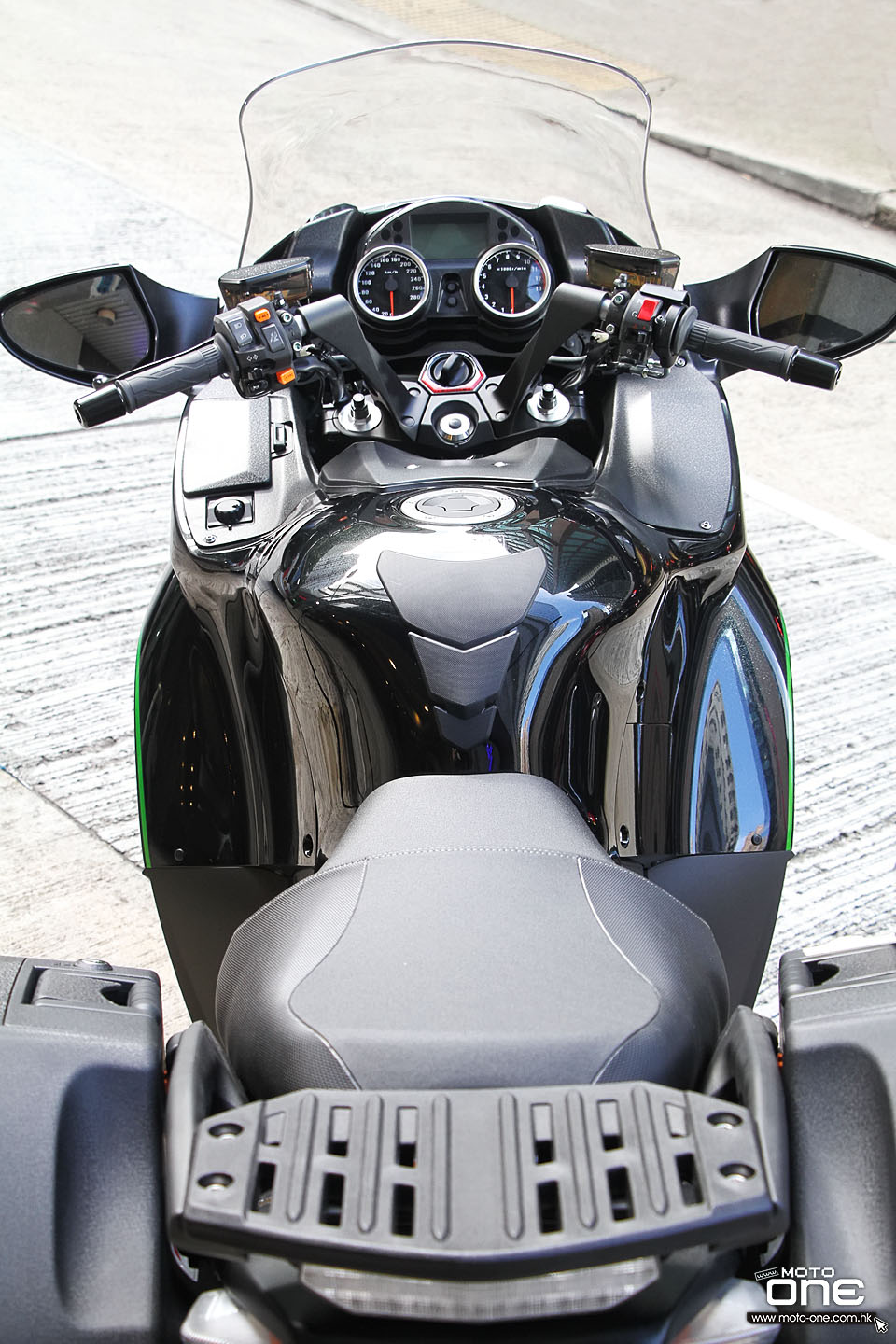 擁有大馬力、大扭力與配備多項電子系統的 Kawasaki 1400 GTR,是川崎引以為傲的超級巡航車系。今次,2015年新車抵港,採用亮黑與啞黑的配色,加上簡單而俱代表的川崎綠線條,配合這雄偉的身驅,外觀沉實而充滿霸氣。