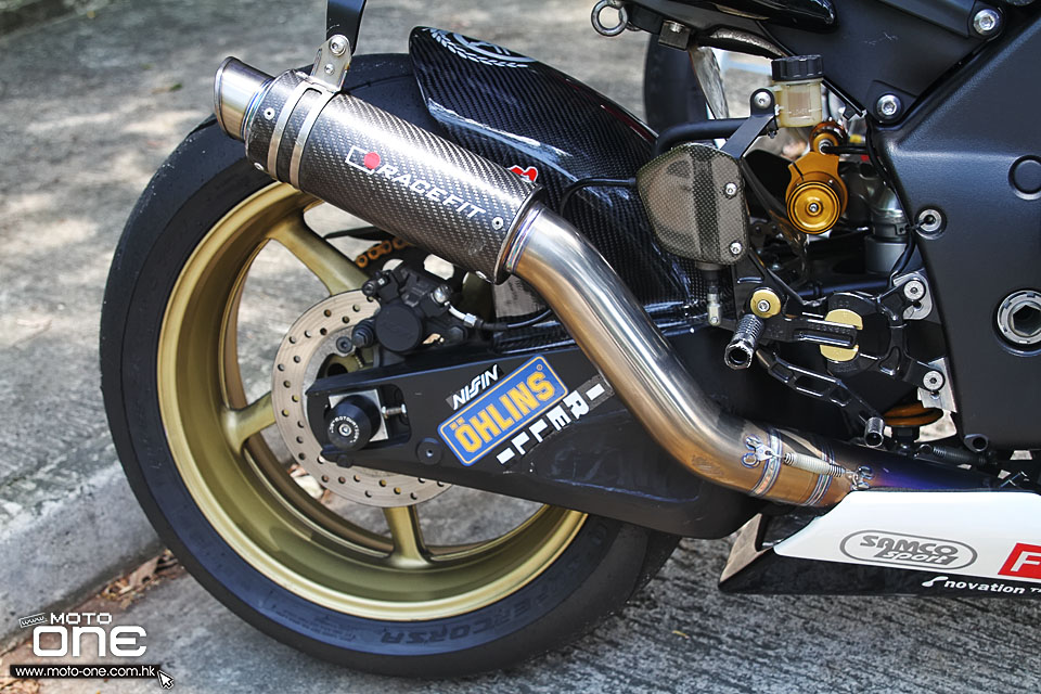 ●新款HONDA CBR1000RR SP原裝已有Ohlins前後避震,Harry則改用了Yoshimura R-11排氣管,更高級煞車卡鉗及賽車腳踏等等。
