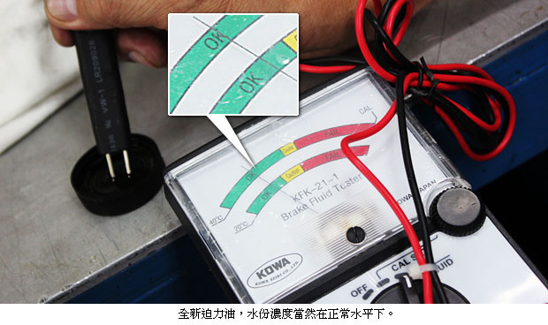 為了彌補不足,「燦基」多年前已引入為名「迫力油質量檢測器Brake Fluid Sensor」來提升檢查的可靠性,因此再無須單靠顏色或使用周期罔下判斷,目的是向顧客提供更多數據,增加說服力。