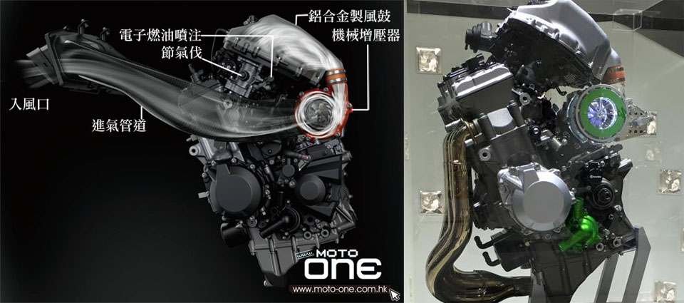 備受爭議的Motogp馬來西亞站結束後,第44屆日本東京車展正式開始,首日只開放給傳媒進場採訪。據外媒報導,KAWASAKI展出了一台標榜更省油的機械增壓引擎,然而廠方並沒有公佈排氣量及馬力等數據,從圖片看來跟H2/H2R的引擎分別不大,同樣採用直列4汽缸的規格。