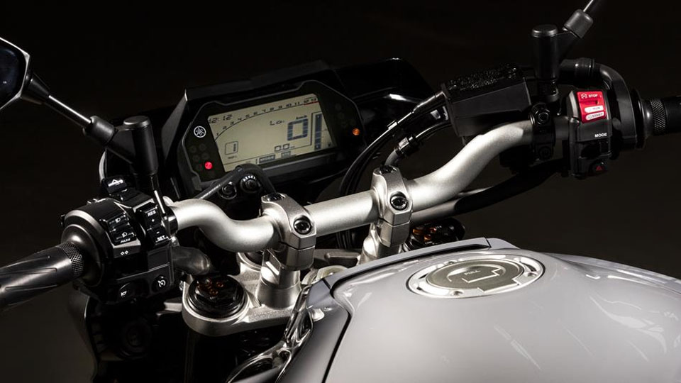MT-10也有三個馬力模式的D-MODE,分別是最大馬力的A Mode、標準Mode及濕地的B Mode,還有可關掉的循跡系統,同樣有三個介入模式供選擇,分別是最少介入的Level 1、中間的Level 2及最大介入的Level 3,三個模式同樣可降低油門操控失誤造成打滑的危險。而KYB的43mm倒立前叉及單筒尾避震同樣提供全調校功能,前320mm煞車碟配Nissin 4活塞煞車卡鉗及尾220mm煞車碟配單活塞煞車卡鉗的規格,與R1相同。