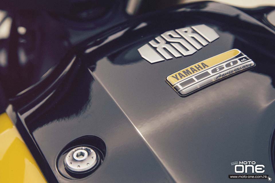 YAMAHA採用復古手法重新包裝XSR900,例如傳統的大圓車頭燈便是昔日街車標 記,簡單線條的油缸也極具80年代風格,60週年版的格仔拉花是自70年代初現於YAMAHA的比賽戰馬上,又稱羅拔士花,這配色叫人不看不厭。事實上,今次介紹配上這拉花的XSR900屬YAMAHA慶祝成立60週年紀念版之 一,也是YAMAHA的FASTER SONS系列之一,此計劃宗旨是使用旗下車輛,透過Custom Bike改裝手法向昔日名駒致敬,例如70年面世的XS650,此車是當年YAMAHA最大排氣的四衝旗艦車系。