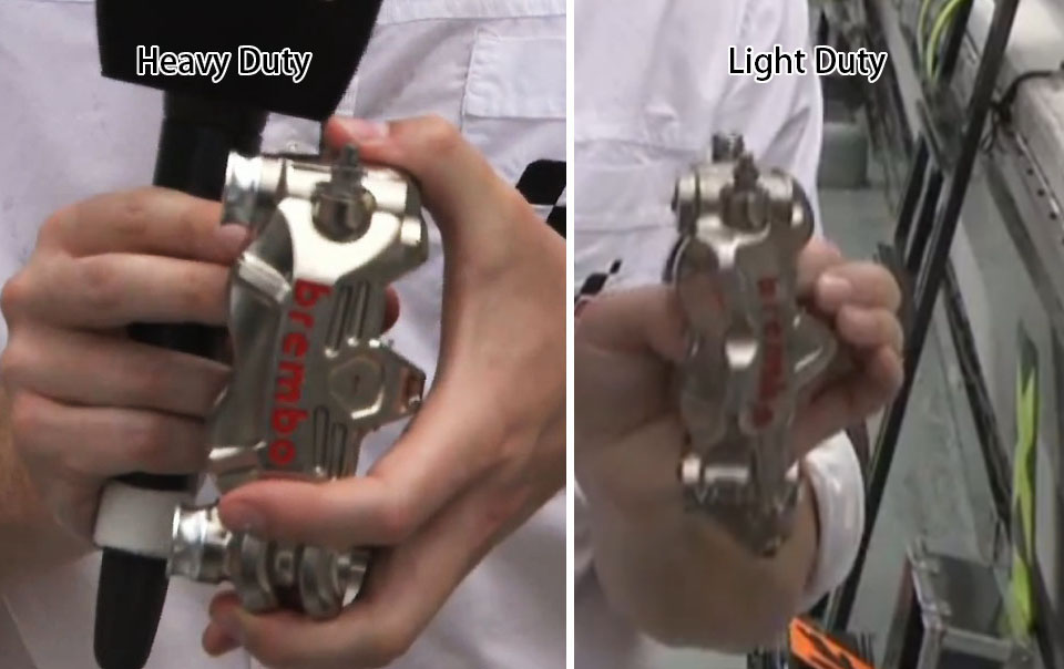 從圖片所見,提供更強勁掣動力的Heavy Duty意味著承受更大扭力,因此體積較Light Duty明顯闊大,活塞上坑紋則是散熱作用。而使用Heavy Duty卡鉗主要是DUCATI車手,其餘車手多使用Light Duty。