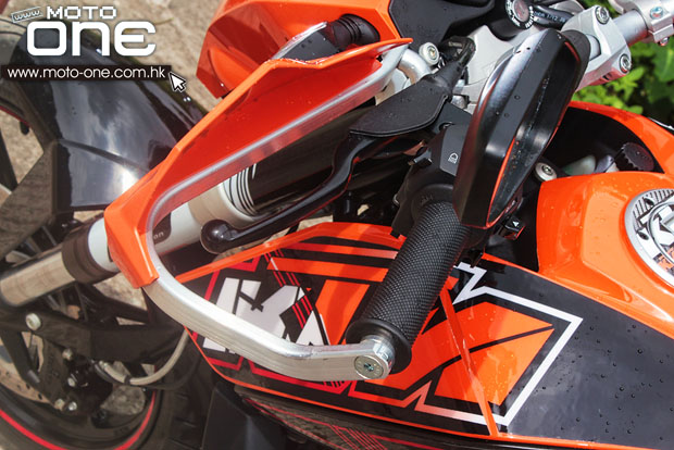 因此,當車廠限制Duke 200專供新興市場及亞洲國家時,令不少歐洲車迷感到失望。近年,香港的輕量級市場戰況激烈,來自五湖四海的品牌已先後插旗,但來勢洶洶的Duke 200雖然屬後起之秀,卻憑著各項優勢先聲奪人。而新車不久前已抵港,但有車主沒有品嚐「原味」情況下,已急不及為新車添置新「架生」,好讓她的外型及性能更上一層樓。