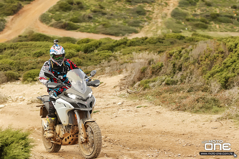 活動下午時段進入OFF-ROAD路段,因為這Multistrada 1200 Enduro為越野而改良的,前輪鋼線輪框及改用19吋菠蘿胎(公路測試時為街胎),從而提升車身高度。當變換至Enduro越野模式時,電子避震亦同時升高,而引擎底部亦加入保護板,如此的配置才可面對OFF-ROAD的特殊環境。