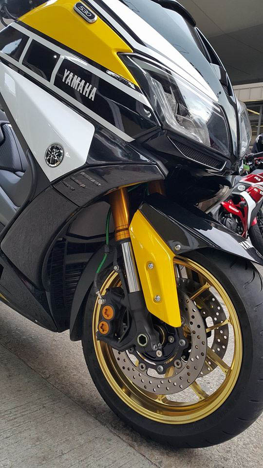 是次,深水埗銀星摩托為TMAX530車主訂購日本製造的OVER RACING鍛造輪框,配上此車貼上的60週年貼紙花,無疑是錦上添花,外觀更吸引。