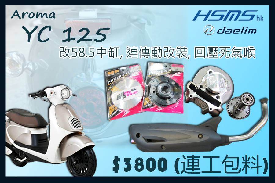 DAELIM YC 125 全套改大58.5中缸, 連傳動, 回壓死氣喉 連工包料 HK$3,800