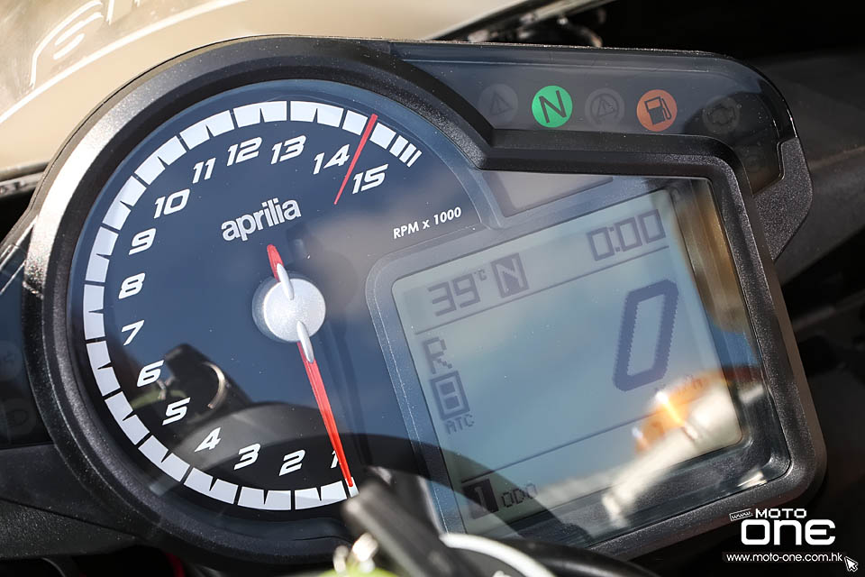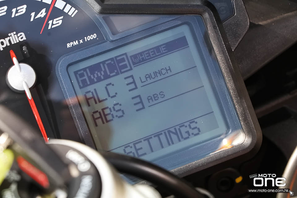 ●2016 APRILIA RSV4 RF儀表板設有日常及賽道兩個示顯範,當然也有各式的電子調較顯示。