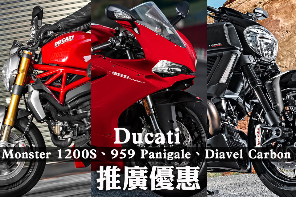 Ducati 959 Panigale、Diavel Carbon、Monster 1200S 推廣優惠