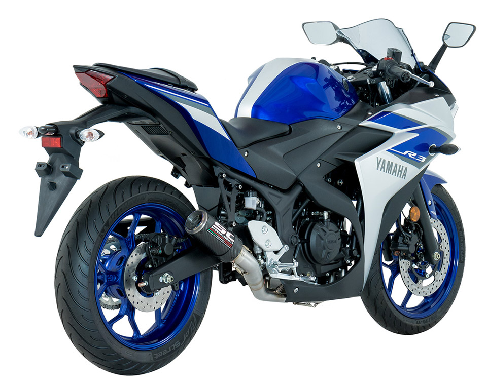 CRT系列-YAMAHA YZF-R3 ●採用Motogp技術開發全梳排氣管,2出1不鏽鋼管身,消聲器為碳纖維物料製造。