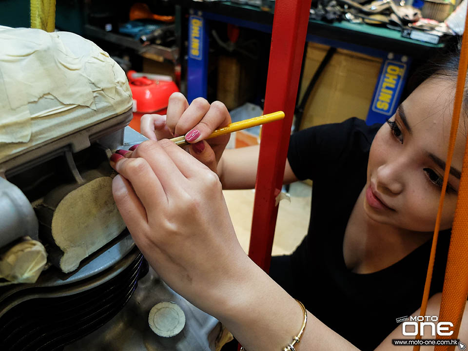 今次改裝首步曲設計插圖的工作,由PAM店內的咖啡師Florence Lee製作,她由車主的Triumph T100著眼,了解車主對翻新改裝所需的改變,再參考其他不同的作品及與技師阿東請教車身部份的設定形態,仔細畫下這精緻的設計插圖。或許,大家與筆者同樣已為Florence有學習繪畫,原來只是在小學時過,主要是Florence對車輛的繪畫有興趣,而無師自通的。