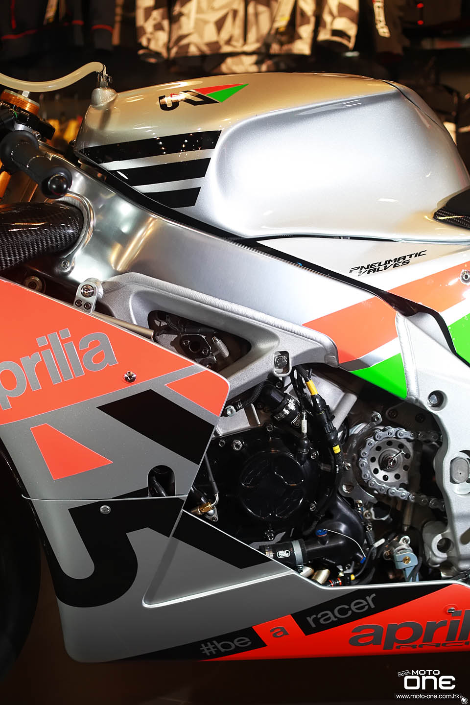 Motogp與WSBK戰車的最大分別之一是前者的引擎使用氣壓關閉氣門(嘩佬),好處比WSBK戰車使用的傳統彈簧氣門可以釋放較多轉數,換句話說能夠榨出更多馬力;此外,Motogp並且使用神一般的無縫齒合波箱。而今次抵港的APRILIA RSV4 FW-GP不單止配備了APRILIA參與2015 Motogp相同規格的氣壓氣門引擎及無縫嚙合波箱外,馬力輸出超過250匹(曲軸計算),尾搖臂更與現役APRILIA WSBK戰車相同,而全碳纖包圍、APX 2賽車電腦(APRILIA自家開發)、Ohlins FGR300前叉、Brembo前/後掣動及marchesini鍛造輪框等等,都達到WSBK級數的部件。簡單來說APRILIA RSV4 FW-GP是一台Motogp與WSBK的混合體。相信讀者最關心是APRILIA RSV4 FW-GP的售價,答案是16萬歐元,拆合港幣約150萬。