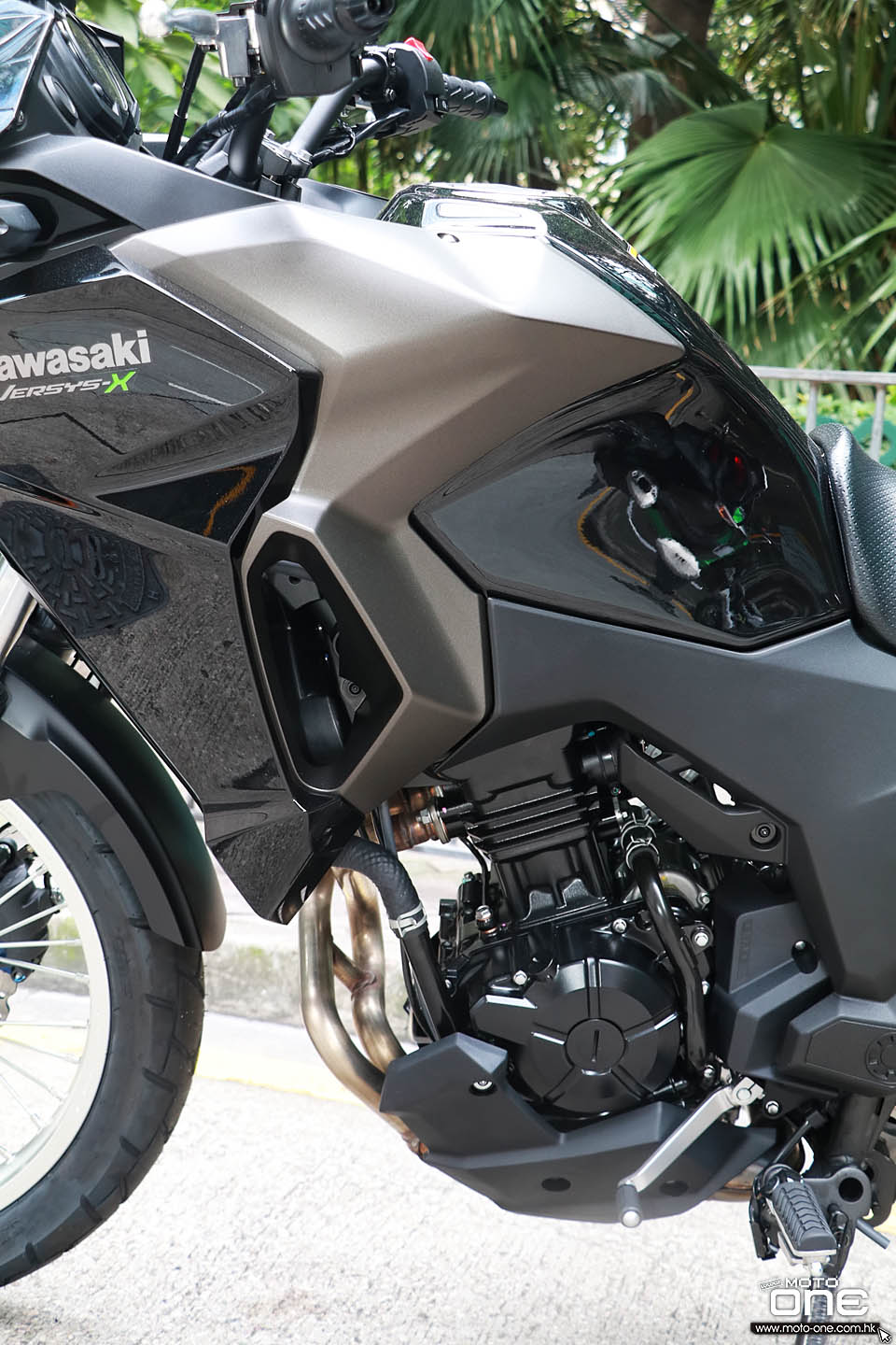 事實上,KAWASAKI本身已推出中量級的Versys 650(雙汽缸)及公升級Versya 1000(直四汽缸),最新的入門版Versys-X 300是採用小忍NINJA 300的水冷296cc直2引擎,馬力39 PS/11,500rpm、扭力2.7 kg-m(小忍2.8 kg-m)/ 10,000rpm,與NINJA 300整體數值相近。當然,Versys-X 300長2,170mm x 闊860mm x 高1,390mm及座高815 mm,體積與座高均與小忍跑車走上另一路線。