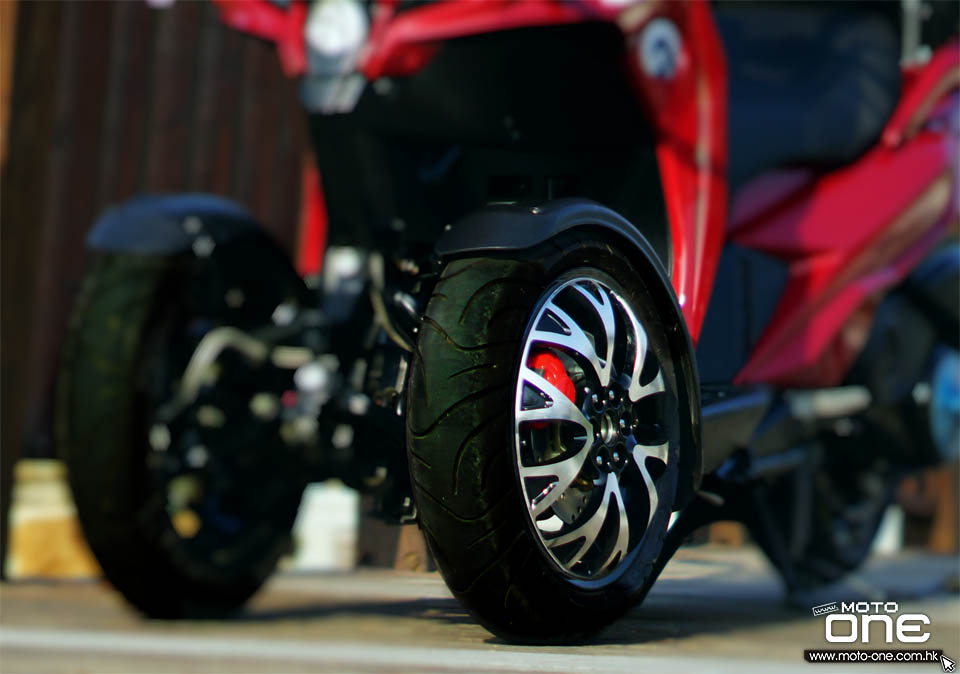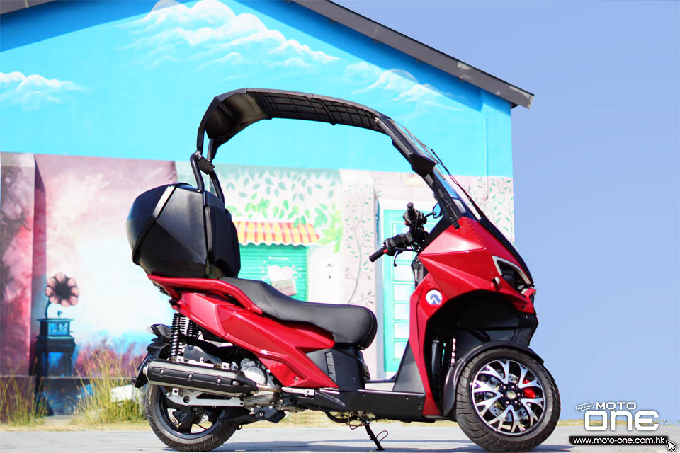 說到今次主角AD1 200,是ADIVA廠方今年壓軸推出的新車,與AD3系列同出一徹前二後一的三輪設計,AD1 200採用水冷四衝單缸引擎,馬力輸出19ps(14kw)/8,500rpm及扭力輸出為1.73kg-m(17Nm)/6,700rpm,優點在於不俗的引擎表現同時,全車乾重為182kg,走輕盈車重的路線,難怪ADIVA廠方亦找來女騎拍宣傳相片,帶出輕鬆駕的形象。