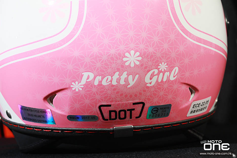 ZUES ZS-212C Pretty Girl 可愛雙鏡機師開面頭盔系列 ZS-212C屬ZEUS今年令人期待的最新型號,採用Pretty Girl 的拉花,配合粉紅白、粉藍白、粉紅啞黑及粉藍啞黑四色,可愛美觀時尚。外殼採用ABS 樹脂製造,符合歐盟ECE及美國DOT安全規格,而且總重量為1000 ± 50g,屬輕巧之列。還有,內置太陽鏡片及可全拆內襯,設計實用。
