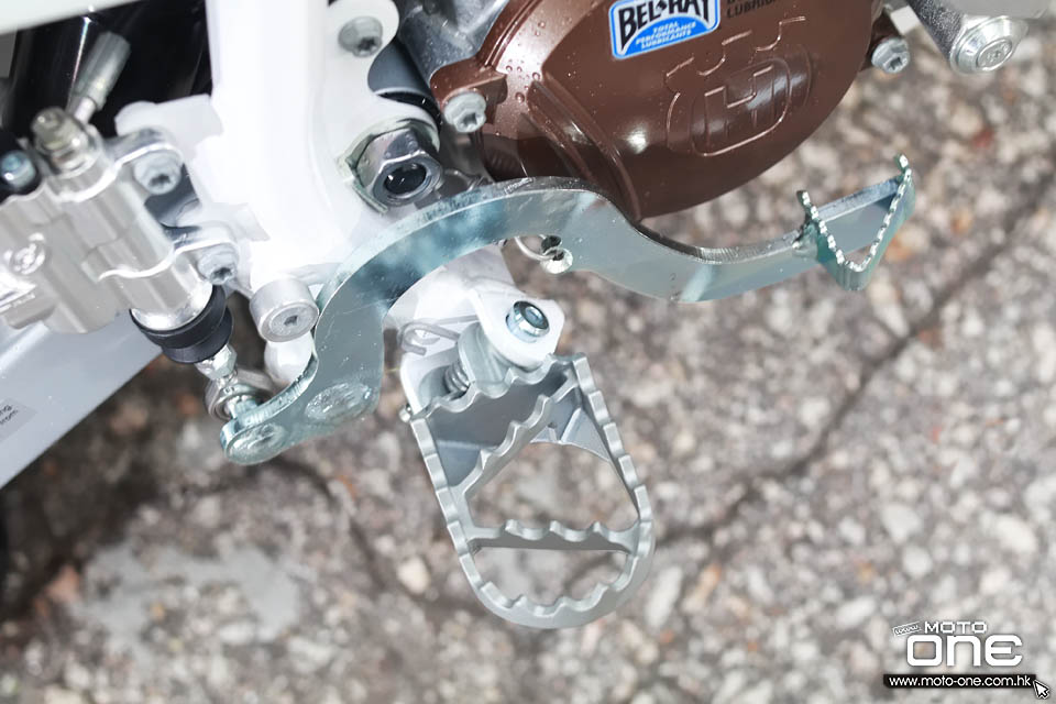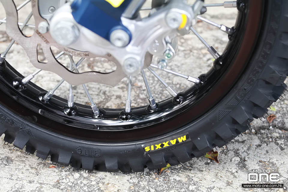 車架沿用廠方一直捧場的鉻鉬合金鋼,頭與尾避震均為WP產品,備有205mm行程的35mm AER倒立前叉,多連桿式單筒油壓彈簧尾避震俱185mm行程,對於只有684mm座鞍高度的車子已屬極級配置。至於11/40的頭尾牙佈局,大家不會質疑那扭力表現,160mm頭尾剎車碟配原廠的剎車鋼喉,在裝備比例上已絕對豪華級別,她完全是廠方全尺碼越野車的迷你版本。