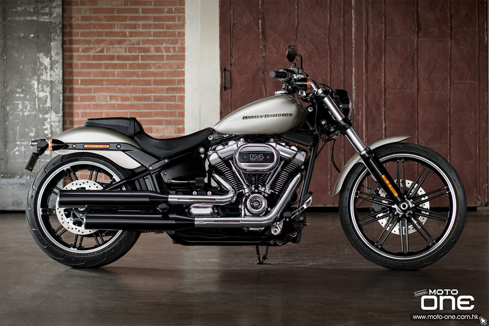 2018 HARLEY-DAVIDSON BREAK OUT同樣配置全新每缸4汽門Milwaukee-Eight引擎,並分別有114ci (1,870cc)及107ci (1,750cc)版本。配合新車架、Showa Dual Bending Valve(SDBV)前避震、設有預載調校的橫置式MONO SHOCK單筒尾避震及大幅偷輕的30磅(13.6kg)之後,有助改善BREAK OUT的轉向性能。