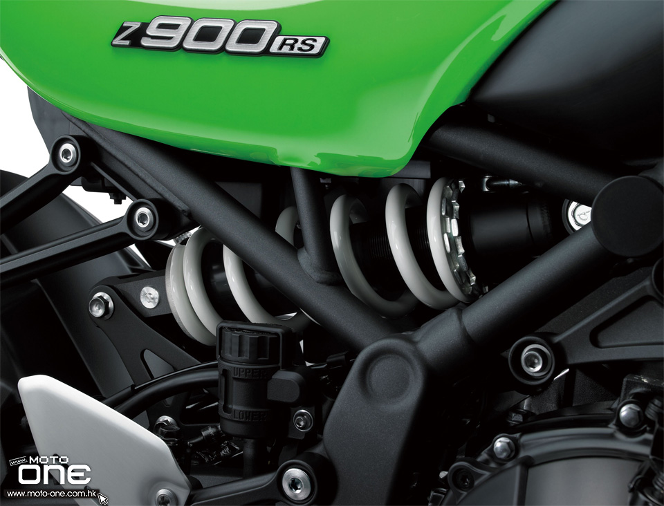 Z900RS是模仿KAWASAKI第一代超電-1972誕生的KAWASAKI Z1;Z900RS Cafe卻是一款充滿Cafe Racer情懷的懷舊車,但兩款車的規格相同,換句話說給懷舊迷兩個選擇。簡單來說,兩台作品採用相同的水冷四衝程直列四汽缸DOHC 16汽門引擎,馬力及扭力分別輸出111ps/8,500rpm及10kg-m/6,500rpm,傳動系統是配備防鎖死離合器,好處是吊極力子更輕鬆及避免高速拖波遭引擎煞車鎖死尾輪,並可讓拖波過程更暢順,配合提供兩段選擇及可關掉的防尾輪打滑循跡系統,無非是提升騎士安全。
