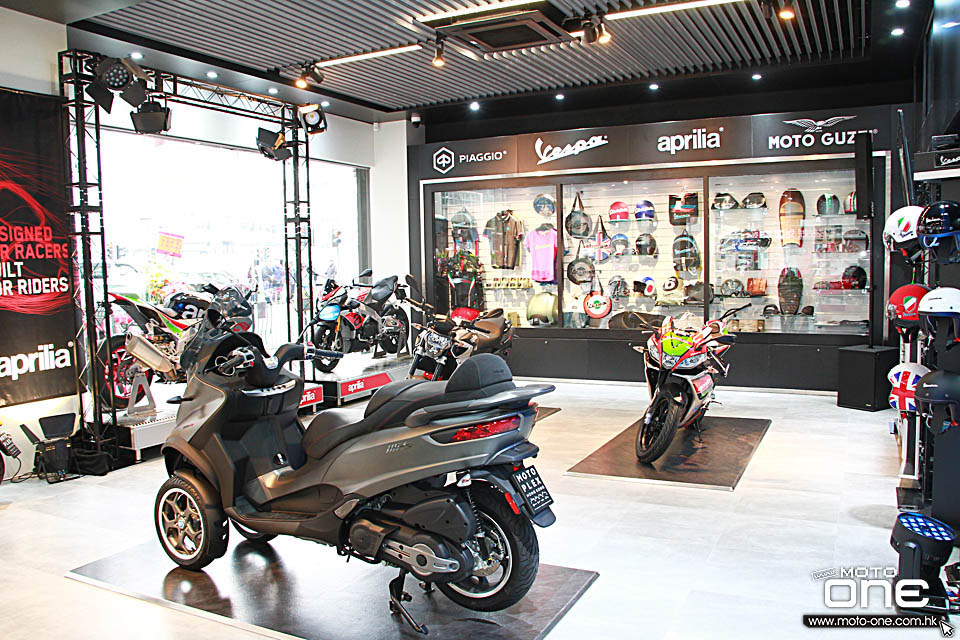 Piaggio集團首次於香港開設MotoPlex概念店,店址位於土瓜灣,佔地超過3,000平方尺,並為Piaggio集團旗下四大高級電單車品牌 - Piaggio、Vespa、Aprilia及 Moto Guzzi的授權總代理。店鋪設計及裝橫靈感源自意大利風格設計,將3,000平方尺店址劃分為四大品牌的展示區及客戶服務中心,提供一系列由電單車、改裝配件、周邊商品及其他生活用品皆應有盡有,充份展現Piaggio集團旗下品牌的獨有特色,讓顧客盡情投入Piaggio的高級電單車世界。除了提供一系列優質的正廠零件,店內將有受過專業訓練的電單車技師和機械師駐場為客戶提供維修服務。此外,MotoPlex香港概念店亦引入貴賓休息室,為顧客帶來充滿趣味及悠閒的嶄新消費體驗,帶來生活品味新態度。