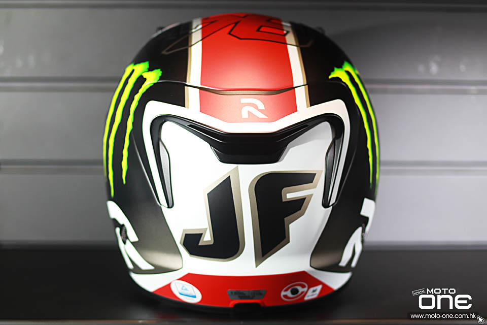 近日,2017 科爾高(Jonas FOLGER)MotoGP車手 HJC R-PHA 11 賽車級頭盔抵港,設計原自世界注著的頭盔拉花設計大師 Aldo Drudi,採用金、黑、紅配色拉花與啞面的組合,有著亮麗出眾的視覺效果。另外,還有MONSTER ENERGY、綠爪、頂部94號及背後JF(Jonas FOLGER簡寫)的圖案,突顯車手款式的型號。