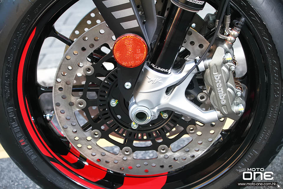 選用了MV Agusta F4 最高級車系相同的優質10柱式輪框﹐輪胎採用更粗壯的200/55 ZR17。