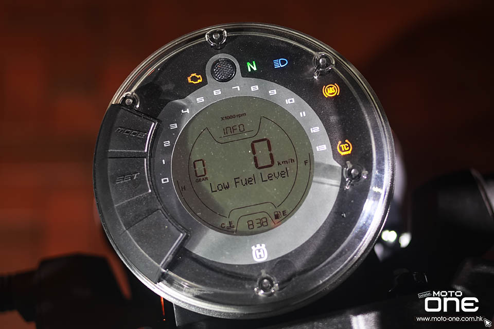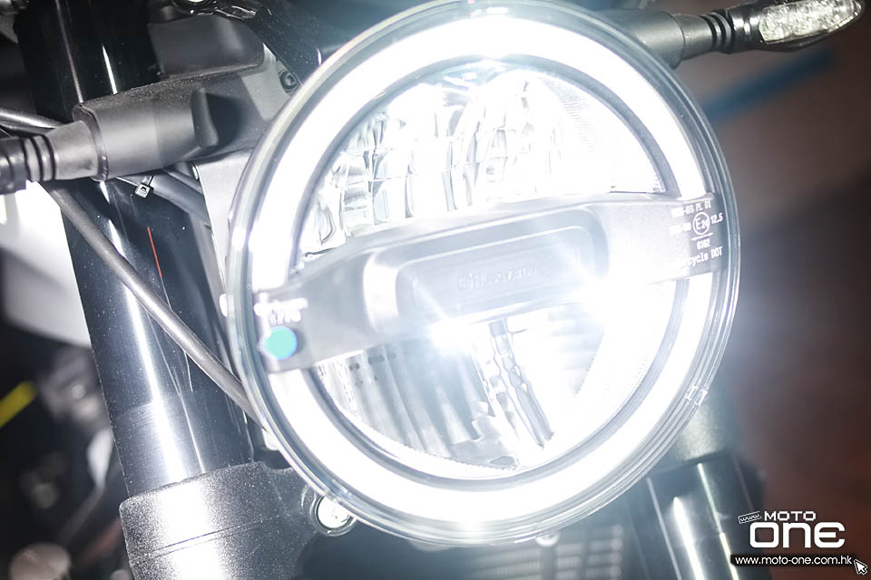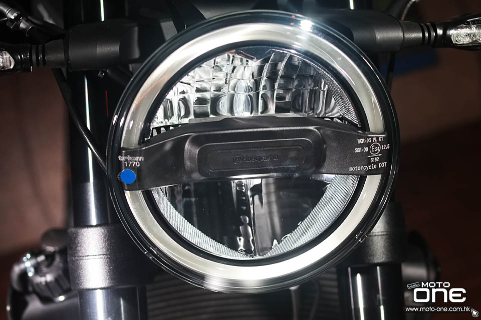 ●環型的「天使燈」,是2018 HUSQVARNA VITPILEN系列的象徵標誌。 波擋顯示為此系車子分享設備,在引擎未有撻著,車匙扭向"On"位置即可察看,更有Bosch備2段功能選擇,因應用家需要可以按制脫離作用,轉換成原始人工智能版本的ABS防鎖死剎車系統。全車LED照明燈具亦為廠方慷慨之作,就連細小至咪錶燈亦為同類設備。頭燈可稱之「天使燈」,環型設計美觀實在。尾燈再找不到燈膽之類的東西,取而代之是近期高級轎車身上採用的LED燈帶。
