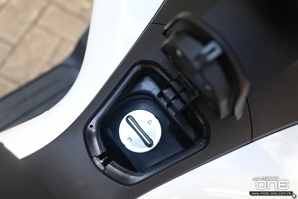 ●駕駛艙左則的儲物箱,內有12V充電插頭,騎士要自購USB轉換頭。 ●水冷四衝程單汽缸SOHC 2汽門引擎依然有ACG無刷式交流發電機,提供IDLING STOP停車三秒自動熄火功能,使車輛更省油。