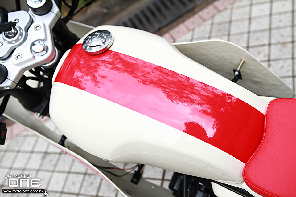 說實在,這GPX LEGEND 200 幪面超人旋風號改並非大裝的作品,主要是一套來自泰國生產製造的特製包圍加本地噴油,再相配合一套相應的泰國改裝排氣喉、升高腳踏、改裝軚碼、扭油筒、改裝指揮燈、前後燈及座椅等等。全車改裝連人工總數約HK$16,000多元。相對如此的改頭換面,如此觸目度,絕對是佛心價。