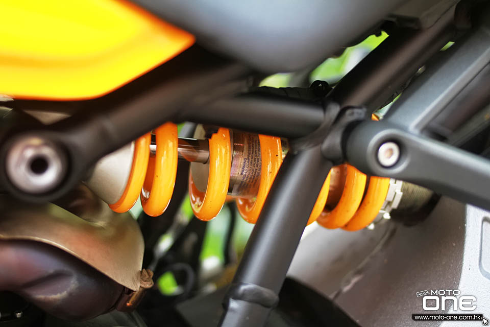 ●MONSTER 821的外型源自高階版MONSTER 1200,新一代MONSTER 821的車尾鴨舌、油缸、排氣管及頭燈更忠於1200,但MONSTER 821卻採用雙搖臂設計。