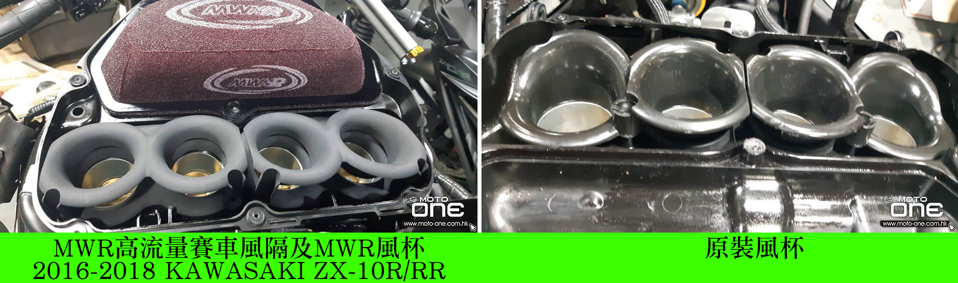 電單車改裝有很多玩法,最常見是更換排氣管、避震、腳踏、牛角、風擋及煞車卡鉗等等;以上的部件不僅可以提升車子的性能及舒適度外,亦可以給車友欣賞。而部份看不見,但同樣能夠提升車子的性能則有高流量風隔(濾芯);此外,更換喇叭咀外型的改裝風杯亦可以提升馬力,而今次介紹2016-2018 KAWASAKI ZX-10R/RR專用風杯,是由MWR與連奪4屆WSBK世界冠軍的KAWASAKI廠隊共同開發。
