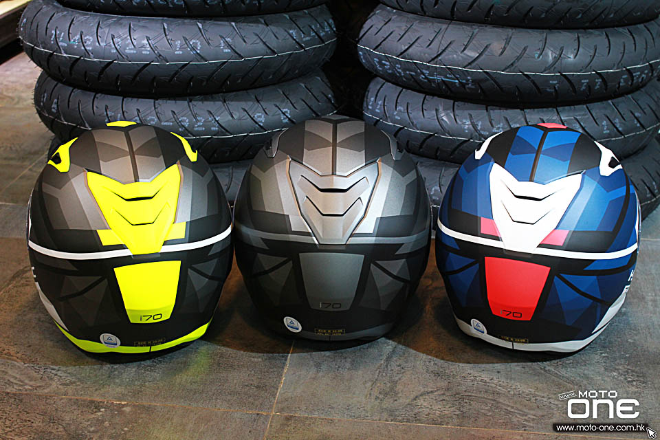 i70 採用先進的聚碳酸酯複合材料外殼及CAD技術製造,內置實用的太陽鏡片,重量為1,500g/+-100g,符合歐盟ECE 22-05安全規格。在面鏡上使用了RapidFire™更換系統,可無需工具下快拆卸和安裝,並具有防霧、防劃花、防紫外線塗層。i70內部採用同廠ACS管通通風系統,為頭盔內提供新鮮空氣。還有,內裡使用SuperCool® 抗菌織物製造,可吸濕排汗及全拆清洗。