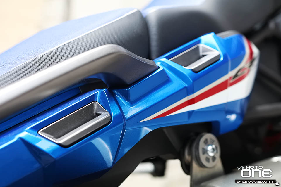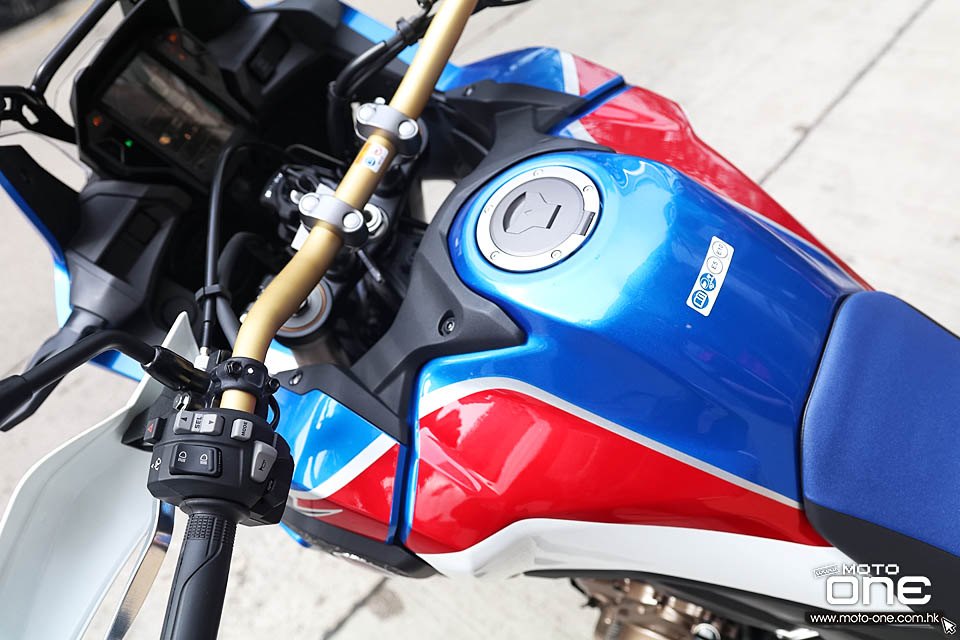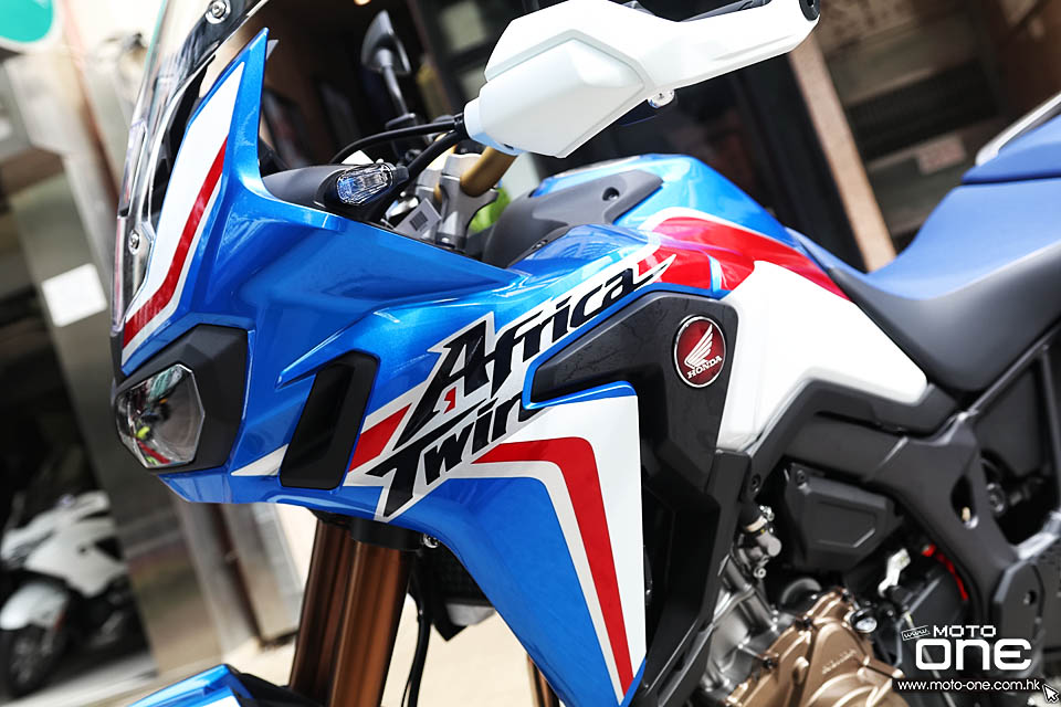 2019 HONDA CRF1000L Africa Twin - 藍白紅花新色登場 HONDA CRF1000L Africa Twin DCT雙離合器版本 - 需要另外訂購。 近年高頭大馬的多用途冒險車種極受歐美市場歡迎,固此HONDA復興當年雄霸達卡(達客爾)拉力賽的Africa Twin重投市場。事實上新舊Africa Twin在各方面不可相題並論,舊款是採用V2引擎,新車則採用更大排氣的直2引擎,分別備有傳統的棍波及DCT雙離合器版本,而今次抵港的是2019 HONDA CRF1000L Africa Twin 藍白紅花新色棍波版登場,採用藍色為主調的車身,配色略帶1988年推出首台市販版Honda XRV 650 Africa Twin HRC拉花的神韻。