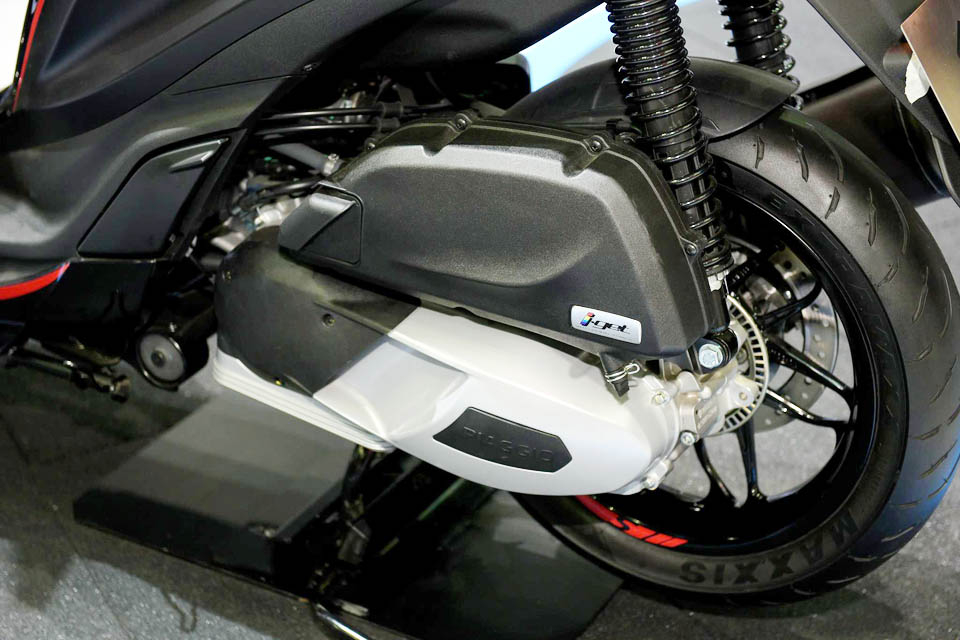 全新i-Get引擎自然配上電子燃油噴注系統外,她的Integrated Start & Stop System ISS綜合起動及死火系統是同級車子中算相當講究。那台水冷式單汽缸四衝程155c.c. OHC 4活門引擎備有靜音起動與電子感應式死火設計。我們慣常聽見的撻車聲音被抺掉了,車子沒有前進一段時間會自動熄火,省卻不必要的消耗。用家不小心意外翻車後,引擎也同樣可以自動死火,在扶正車子後輕輕扭動油門可令引擎從新起動,這動作同樣地應用在長時間不開動車子的時候,相當人性化的高實用設計,安全、省油與方便等3項同時加分。
