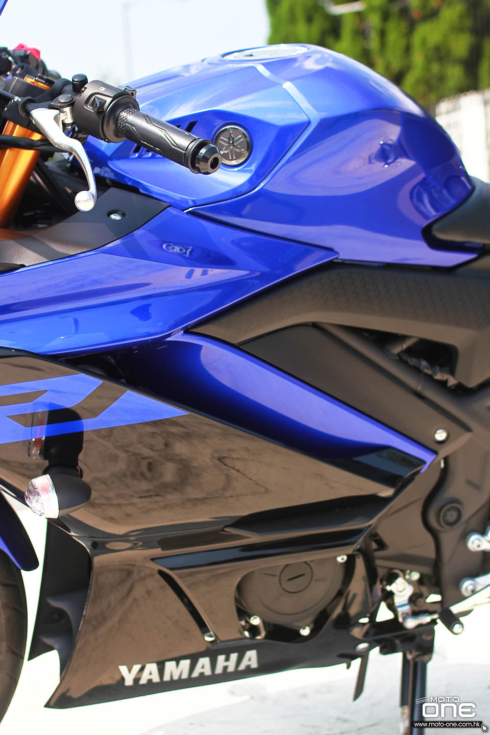 事實上,整個新款YZF大包圍系列,包括R1、R6及今次介紹的R3,外觀設計都是以YAMAHA MotoGP戰車-M1為藍本。要是在賽車場看見三部車,同時拆走頭燈及披上相同的廠藍色,辨認她們並非一件容易的事。