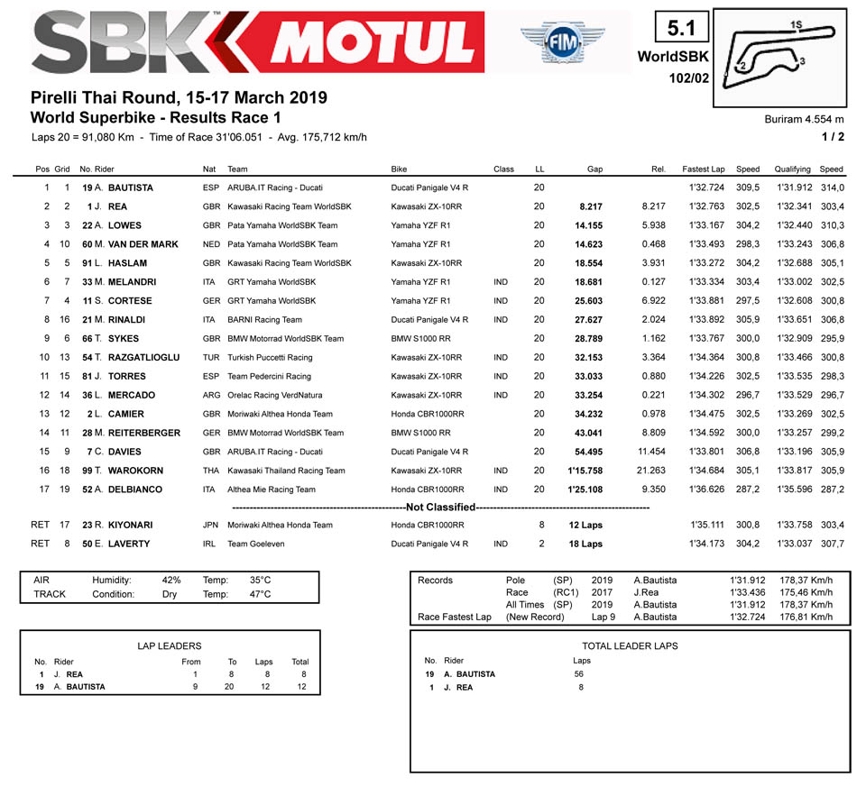 事實上,由MotoGP轉戰WSBK的捌第並非首次在泰國武里南比賽。他於2018 MotoGP中,已有在這裡作戰的經驗。另一方面,於星期五首日測試中,捌弟表示李亞要擊敗他,必須要推至極限。可是從揭幕戰及泰國站的Race 1來看,即使李亞推至極限,現階段彼此的實力仍有明顯距離,或許賽會放寛實戰轉數的限制,方可在短時間內追上。