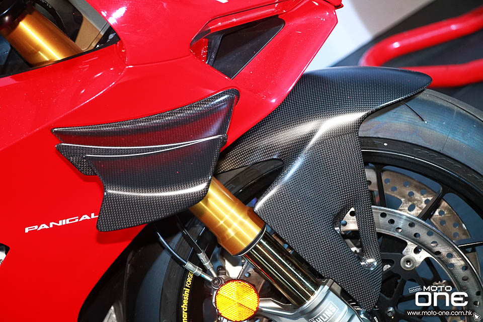 而加強下壓力的碳纖維定風翼,廠方強調技術來自Motogp,配合先進的電子功能(例如循跡系統),戰車在加速期間有效抑制起頭問題,減少飄浮感,車身在急速煞車更穩定,有助攻彎。事實上,近年在Motogp興起的定風翼潮流全賴DUCATI創造,DUCATI也是花最多資源開發定風翼的車隊。另一方面,WSBK(世界超級電單車賽)賽會在2018年修改賽例,容許戰車使用定風翼,因此吸引車廠把該技術引入市販SUPERBIKE上,但車迷要等到2019年WSBK賽季,才會看見使用定風翼的戰車出場,例如今次介紹的V4 R。