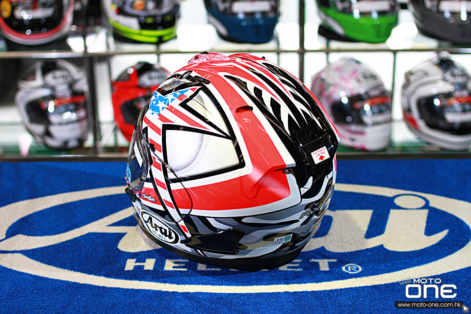 MotoGP冠軍Nicky Hayden在不幸遭遇意外事故過世之後,世人對於這位偉大的車手,仍舊有許多的思念,Arai也設計了一頂紀念2006年Nicky Hayden在MotoGP美國Luguna Seca賽道摘下勝利的特殊復刻紀念帽。