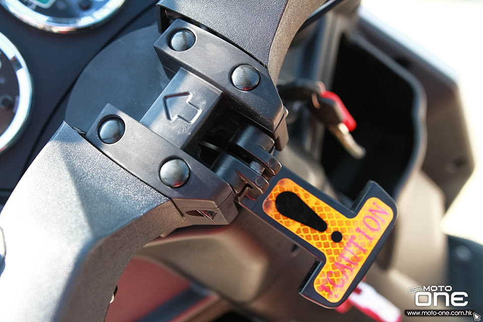 —雖然三輪車因為急煞導致跌車的機會很低,但車廠為新款AD1 200的每個輪子加裝獨立ABS,提升騎士安全之餘,還符合歐四規格。