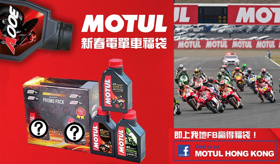 【MOTUL新春送豬迎鼠】 農曆新年除了拜年外,可以玩下MOTUL新春福袋活動,為答謝香港電單車車友一如以往支持MOTUL,凡由2020年1月21日至2月22日到售賣原裝行貨的電單車車行更換/購買MOTUL機油,客戶便可憑單據參加MOTUL新春福袋活動,名額有9個,獎品將會以抽獎形式送出,本活動以抽獎箱隨機方式從達到以上條件之參加者中抽出得獎者。活動將會在2020年2月26日公布得到福袋的9位朋友。