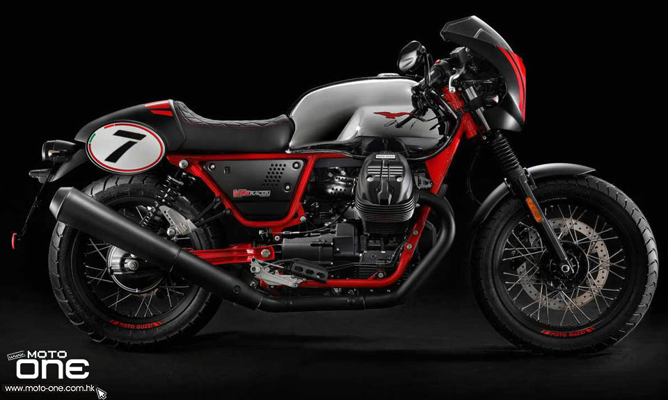 賽車號碼牌貼有冧把7,代表V7型號,號碼牌更捆上意大利國旗色邊框,座墊則採用紅線縫紉,與火辣辣的紅色車架及尾搖臂互相呼應,配合電鍍油缸,更顯高貴。另外,雖然駝峰型鴨尾可以移除,讓車主輕鬆由單座變雙座,但是大傾角的尾座並不舒適。若果騎士經常雙騎,可以選購原廠雙騎座墊。