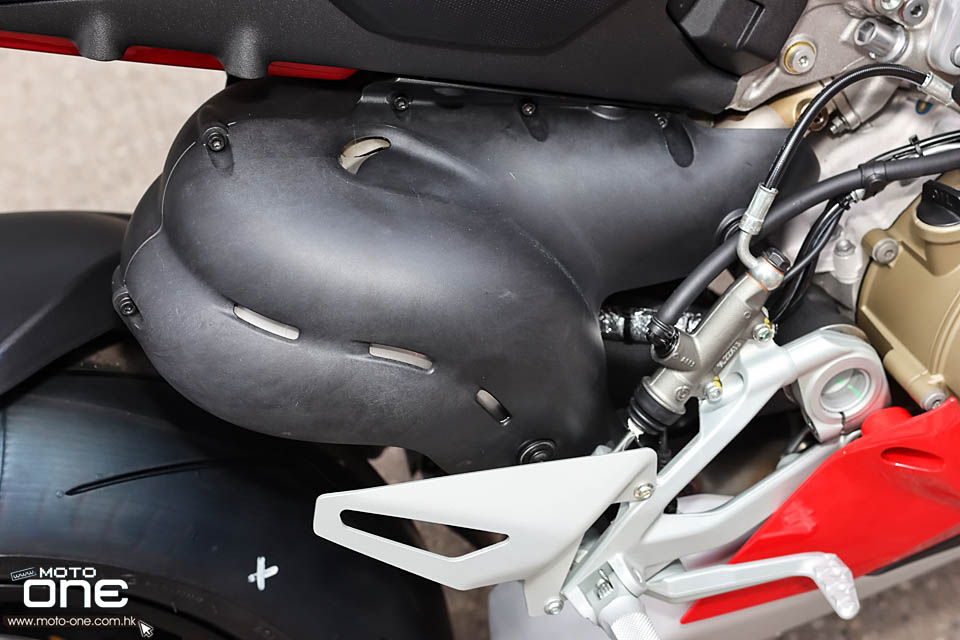 編者曾在賽道駕駛舊款V4 S,輕量化衍生的靈活度至今仍然記憶猶新;雖然如此,廠方還要進一步提升新款V4 S的操控性能,目標是讓騎士更輕鬆地攻彎,方法之一移植V4 R的車架。雖然包括V4 R在內,所有V4均採用名為"Front Frame"鋁合金車架,但V4 R的車架更輕量化,彈性更高,吸震力更好,可以減低輪胎負荷。 。 新款V4 S沿用電子Ohlins NIX30 43mm直徑前叉及Ohlins TTX36電子尾避震,並由Ohlins Smart EC 2.0系統控制。不過據廠方講修改了車身幾何角度,稍稍降低前及後避震的高度,使車輛重心提升,座高也由舊款830mm提升835mm,但好處是攻彎的性能更銳利。