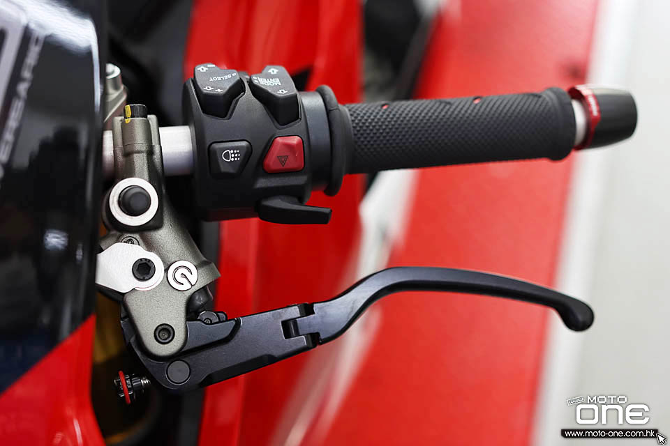 2 x 330mm半浮動碟配Brembo放射式Monobloc M4.30 4活塞卡鉗 (賽車式Cornering ABS) 。