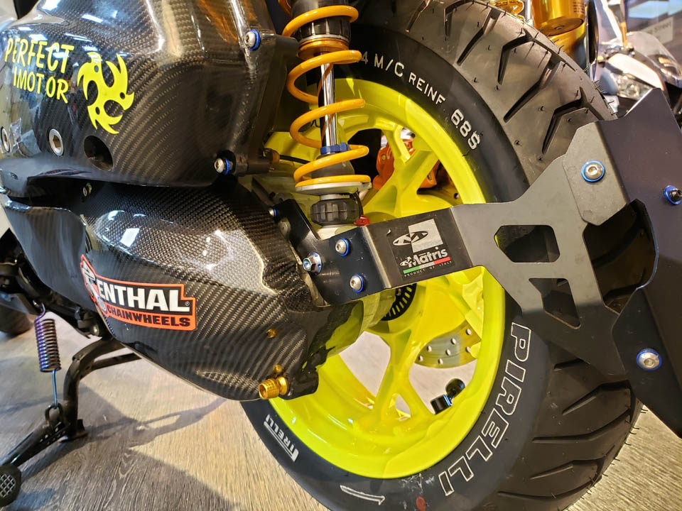 今次,銀星摩托接到此XMAX300車主的要求,將一對原是黑色的輪框,特別噴上超搶眼的螢光黃色,瞬間令這台大幅改裝的XMAX300外觀再度提升,錦上添花。