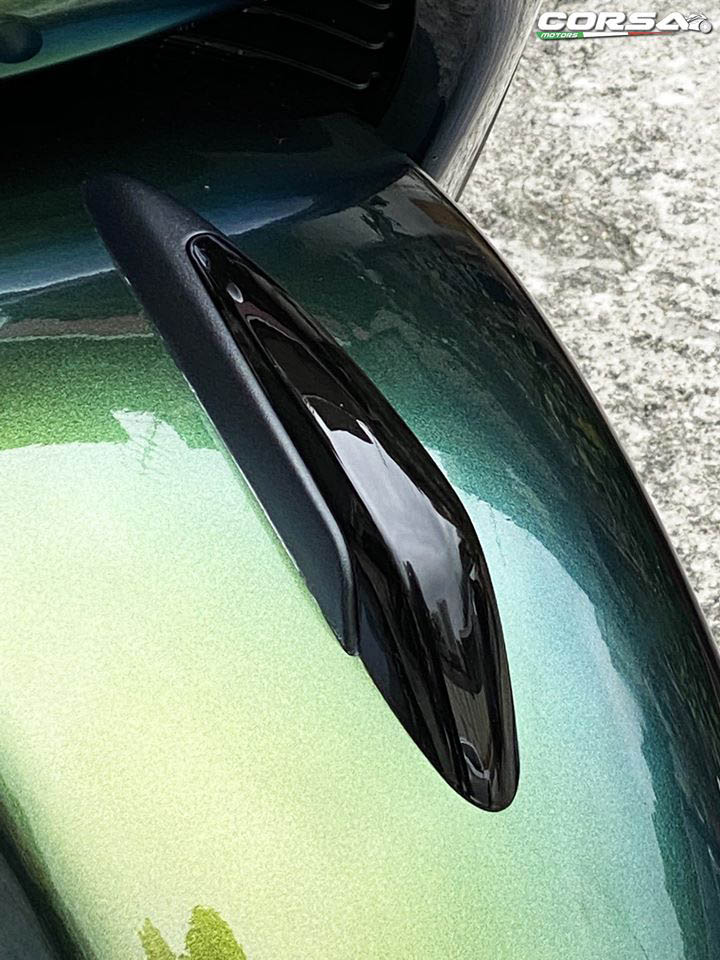 一直以來,CORSA MOTORS提供一站式改裝及噴油服務,為Vespa全線車系引入大量的改裝部品及訂購服務,為各車主進行心目中的改裝項目。已經有許多車主到CORSA MOTORS,選用轉色及改裝服務,例子如下列圖片。最近,CORSA MOTORS為一台Vespa GTS300 Modification噴上幻彩綠,配搭不同的黑色改裝部件及前後LED指揮燈,出來的效果非常搶目。
