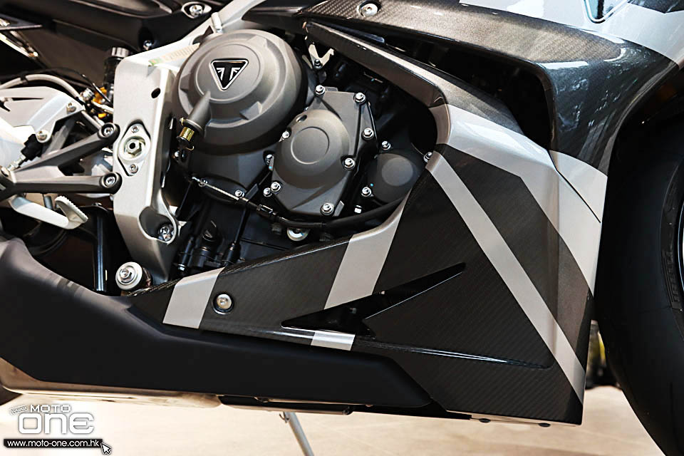 至於TRIUMPH如何提升街版引擎至Moto2規格?據廠方公佈,引擎的盤頂、進氣及排氣導獲得修改,目的改善進、排氣效能,工程師同時提高壓縮比,改用更高噴射量的電子燃油噴嘴,並採用鈦合金嘩佬(氣門)、更堅硬活塞、更硬氣門彈簧、新凸輪軸及新連桿,以及為部份重要部件,例如活塞銷等等鍍上DLC(鑽石般堅硬)塗層,可以減低磨擦及具有抗磨作用,還可以應付更高轉數及更大馬力產生的壓力。傳動方面,工程師修改第一及第二檔齒輪比,並改用具有調校功能的滑動式離合器(控制引擎煞車),機器外殼經修改後,使引擎闊度更窄。
