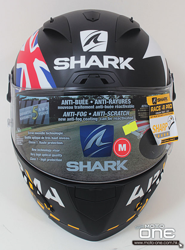 活躍於頂級賽事的SHARK Race-R Pro賽車級頭盔,單在在Motogp已有Stefan Bradl、Randy De Puniet迪潘尼、Aleix Espargaro三名車手選用,可見其實力所在。是次,最新抵港的是moto2車手Scott Redding的最新拉花型號,裡裡外外同樣精彩。