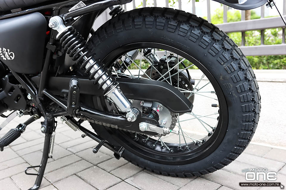 古風設計做到足 至於輪圈方面則功課做足,採用17吋古風綱線圈和細釘菠蘿胎,原廠出車搭配台灣華豐DURO HF-308 (3.50-17 54P)復古胎;再配短小泥擋。新車採用磨砂黑色設計。加上傳統單頭大圓燈、橫紋一體式座鞍、風琴式前叉護罩,能打造出古風設計都做到足了,餘下來就是你喜不喜歡已。
