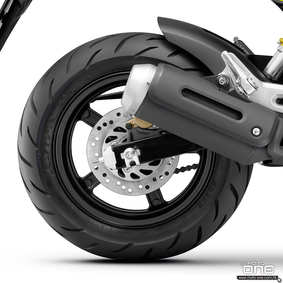 至於煞車系統維持不變,前煞採用220mm煞車碟配2活塞煞車卡鉗,尾是190mm煞車碟配單活塞煞車卡鉗,但新車採用新設計的五柱式12吋前及後輪框。