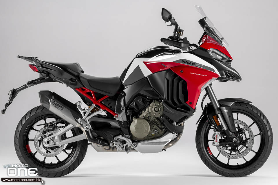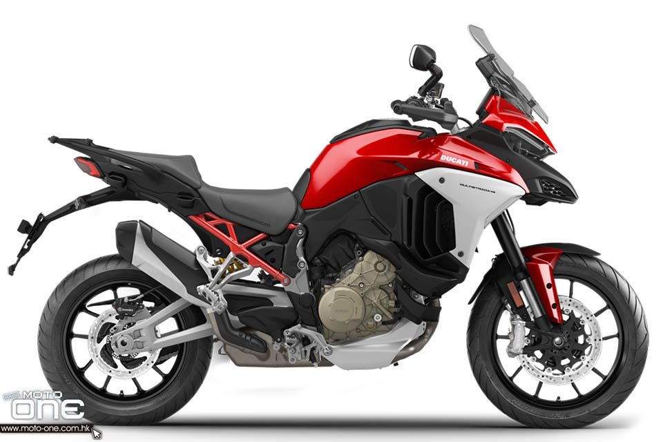 2021 Ducati Multistradas V4 S版(前後Ducati Skyhook電子避震),備有紅及灰兩色,亦可選擇鋁合金十柱式合金輪框及鋼絲輪框。